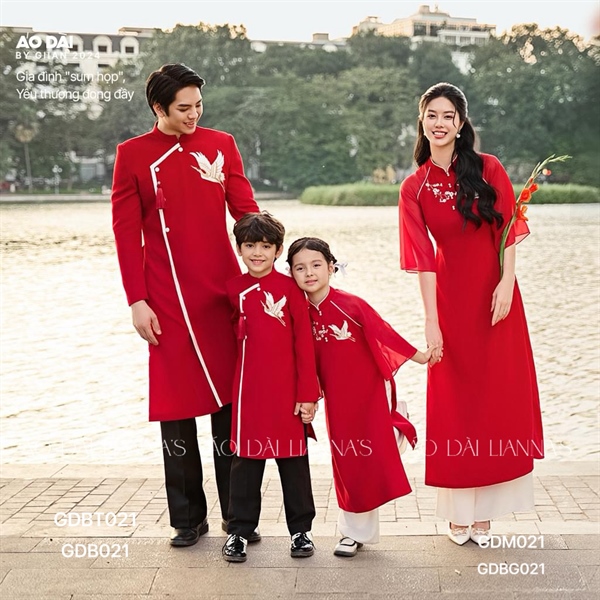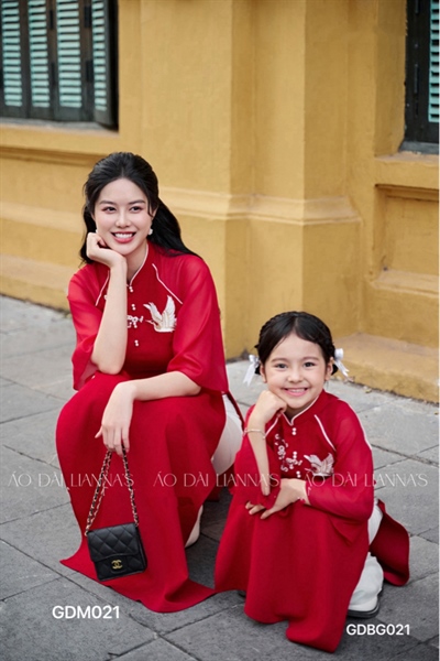 AD mẹ nhung tằm đỏ thiết kế chim thêu phối tay tơ _AD gia đình
