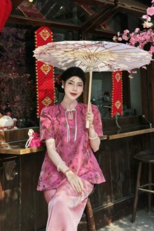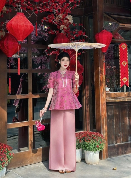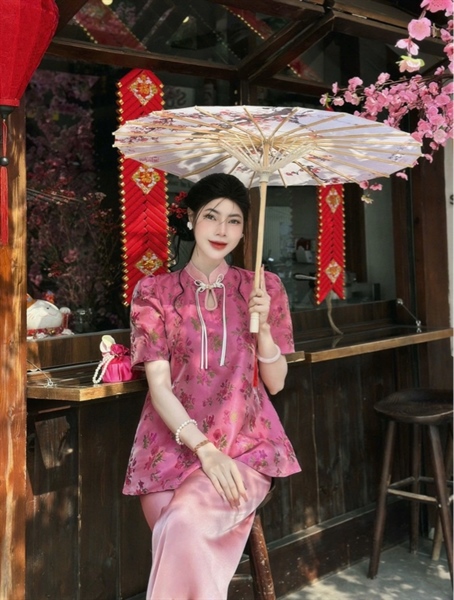 áo bà ba gấm hoa tong hồng