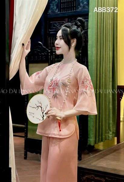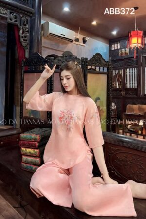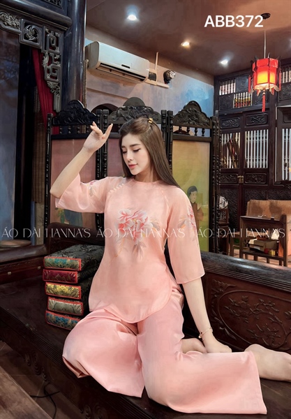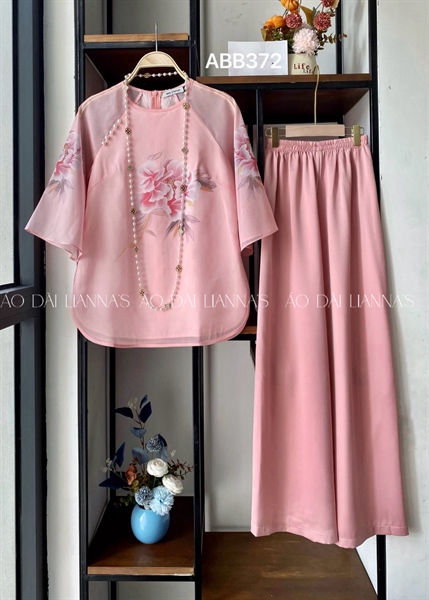 Áo bà ba tơ hồng hoa hồng
