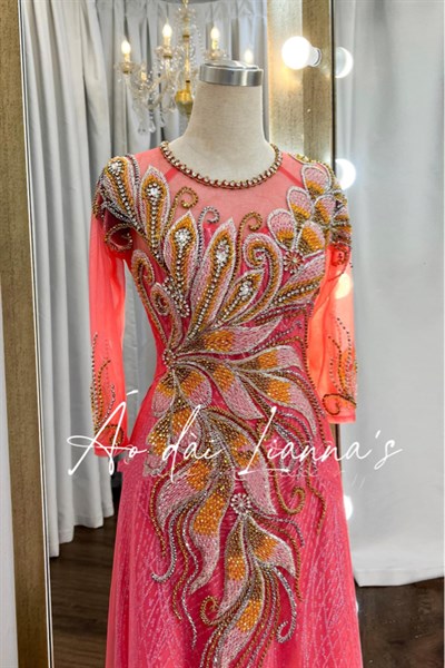 Áo dài bà sui cao cấp được đặt may hoàn toan theo số đo chuẩn , được may bởi đội ngũ thợ may với nhiều kinh nghiệm may đồ cưới online hơn 30 năm, lên form áo đẹp ôm dáng, đính kết tỉ mỉ sắc sảo từng chi tiết .