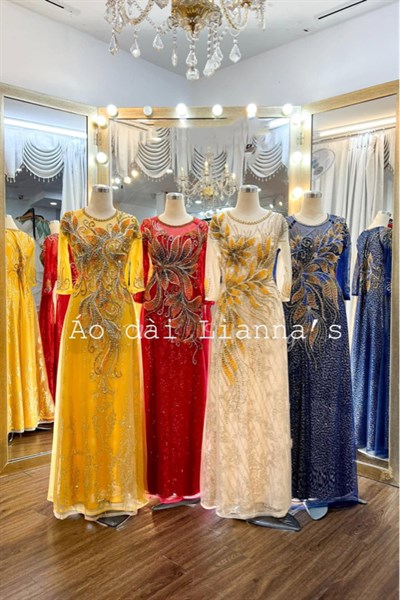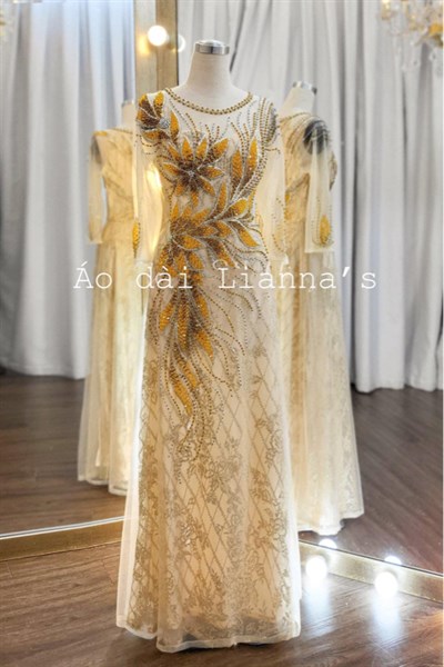 Áo dài bà sui cao cấp được đặt may hoàn toan theo số đo chuẩn , được may bởi đội ngũ thợ may với nhiều kinh nghiệm may đồ cưới online hơn 30 năm, lên form áo đẹp ôm dáng, đính kết tỉ mỉ sắc sảo từng chi tiết .
