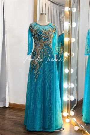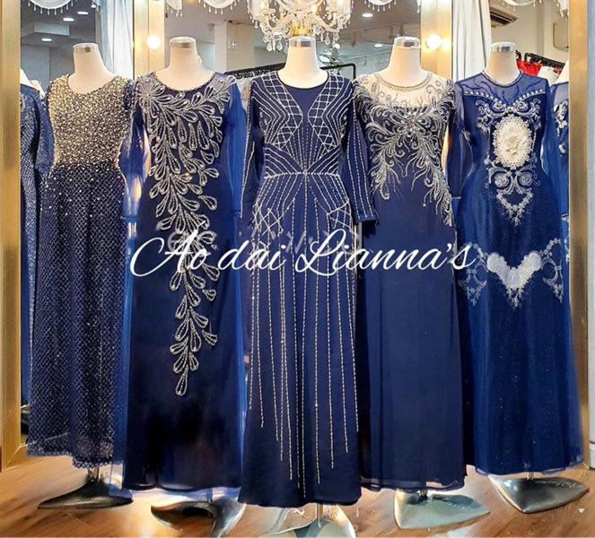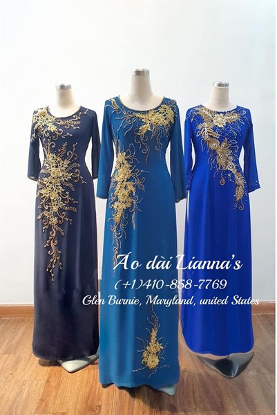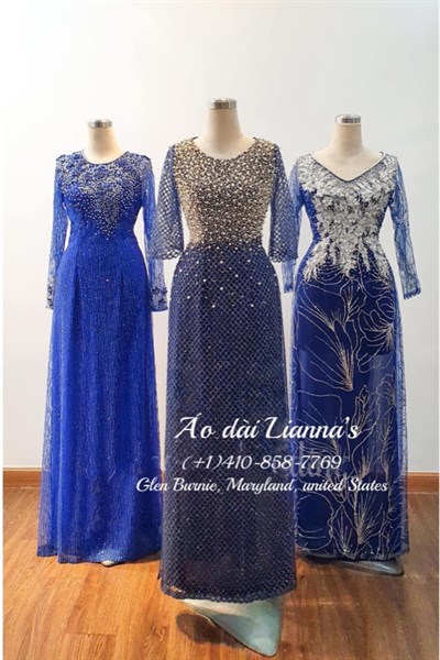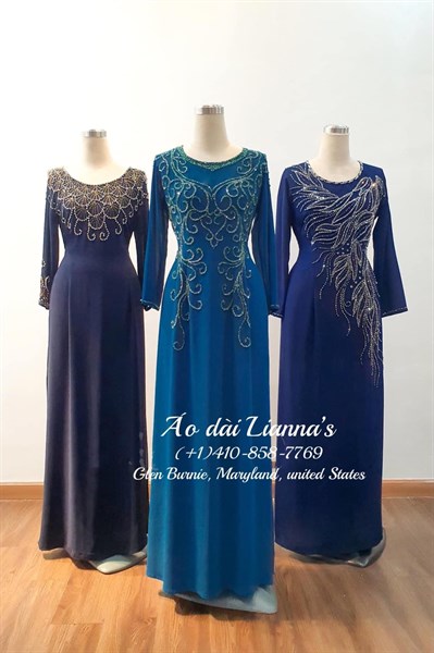 Áo dài bà sui cao cấp tông xanh blue