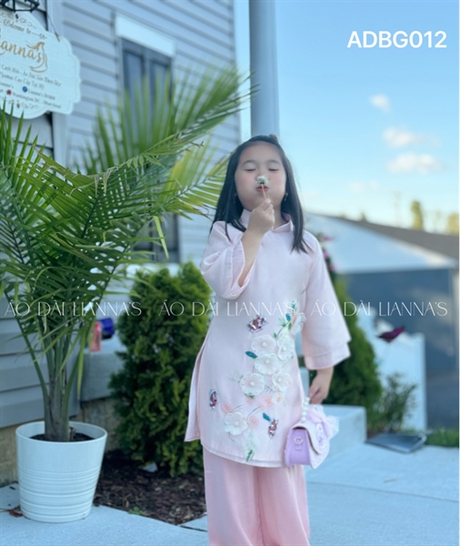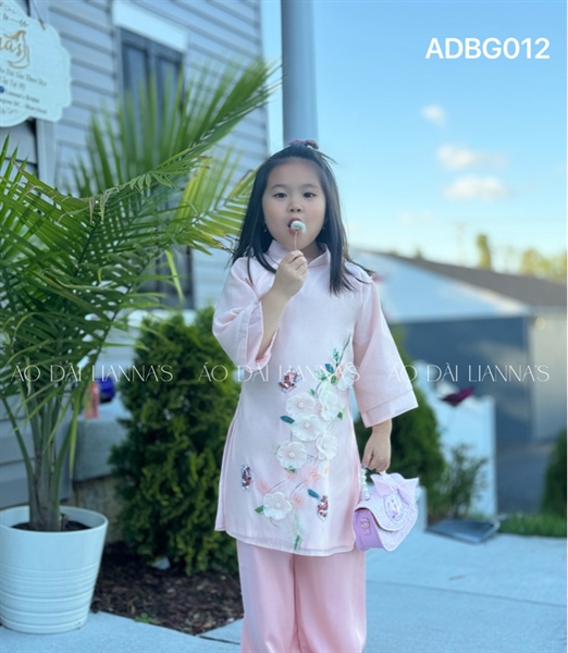 Ao dai bé gai tơ ket hoa nude hồng