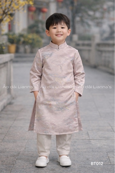 Áo dài bé trai Hồng paste họa tiết sông núi