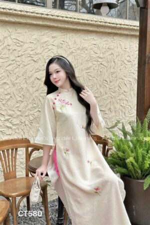 Hãy là người đầu tiên nhận xét “Áo dài cách tan mau be vàng theu hoa quan hong sen” Hủy