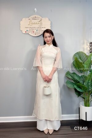 Hãy là người đầu tiên nhận xét “Áo dài cách tan nơ kem viền Hồng” Hủy
