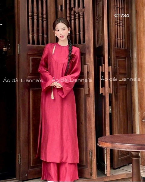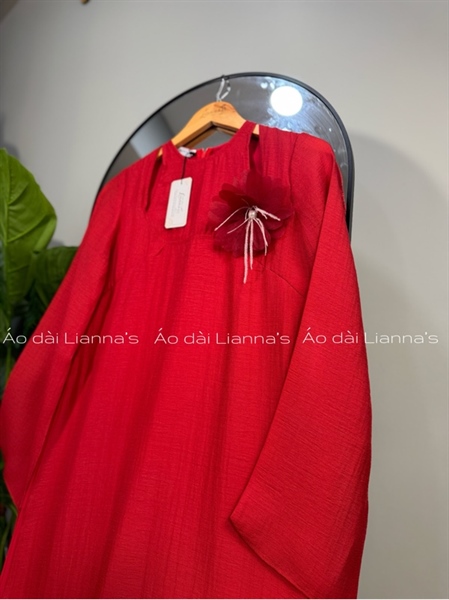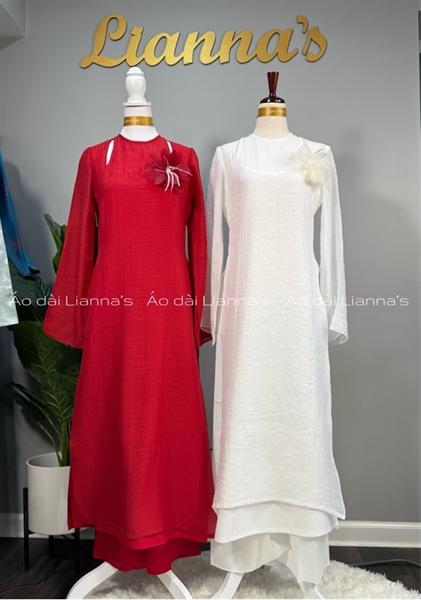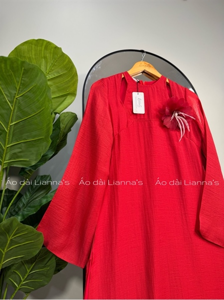 Áo dài cách tan tơ đỏ cài hoa