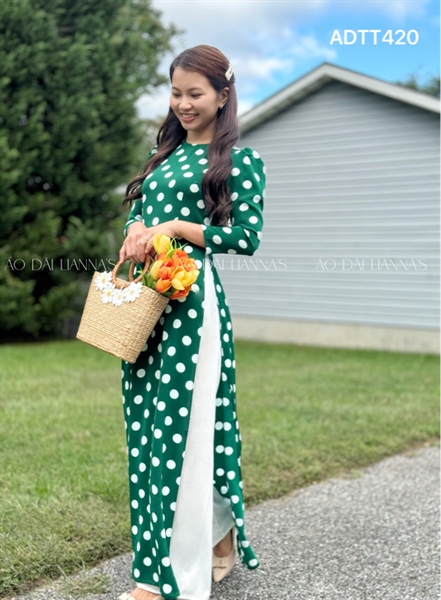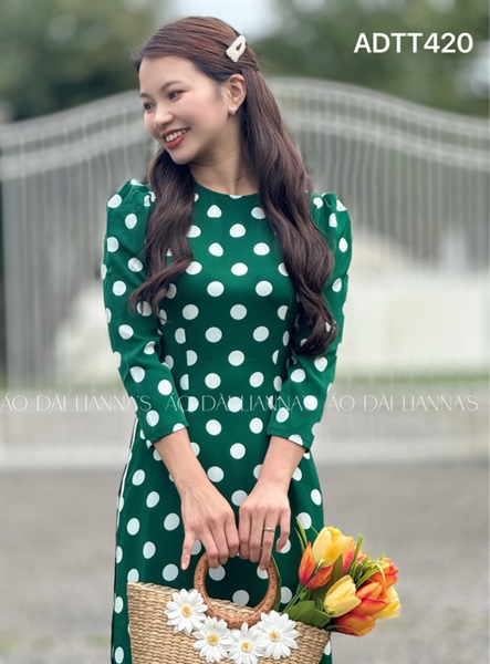 Áo dai chấm bi xanh lá