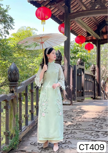 Hãy là người đầu tiên nhận xét “Áo dài CT xanh lá nhạt thêu cổ viền kiểu” Hủy