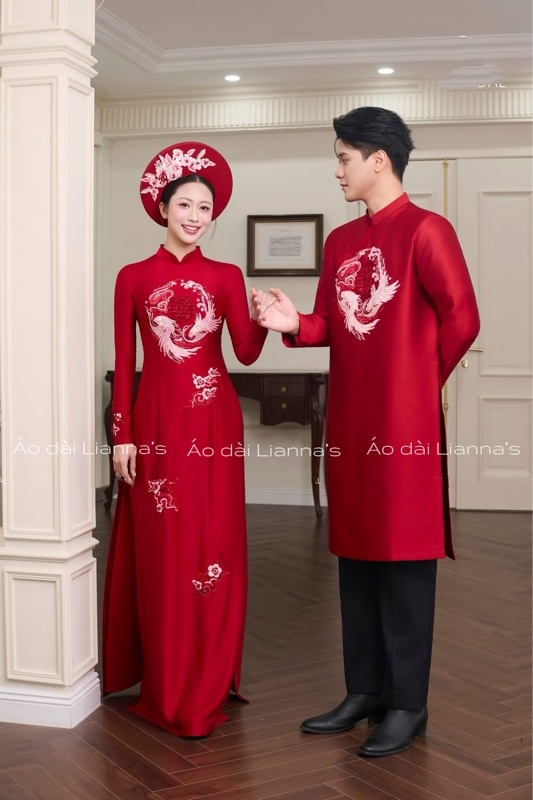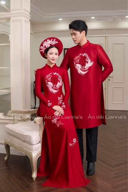 Áo dài cưới đỏ long phụng
