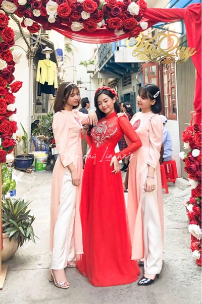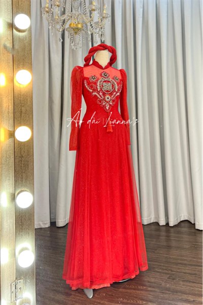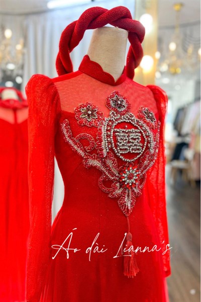 Áo dài cưới thiet kế đỏ chữ hỷ