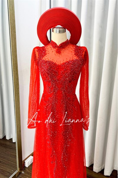 Áo dài cưới được đặt may theo số đo (customized in about 5 weeks).
