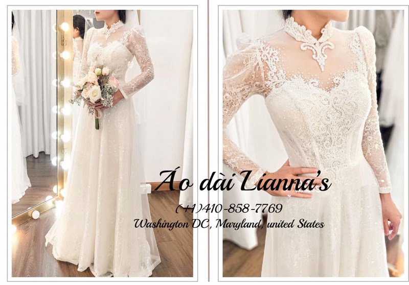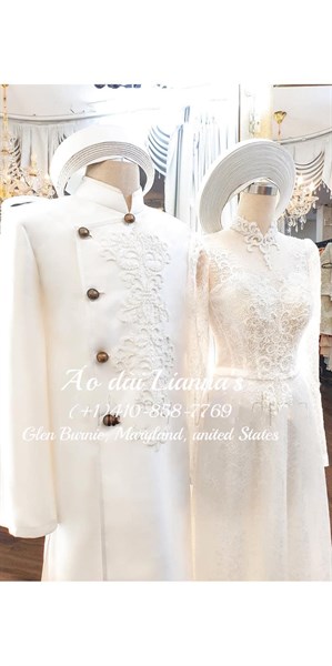 Áo dài cưới được đặt may theo số đo (customized in about 5 weeks). $690 cho cả nam và nữ ($690 for men and woman ) Mọi chi tiết them thông tin hình ảnh đồ cưới tại page facebook Lianna’s Bridal
