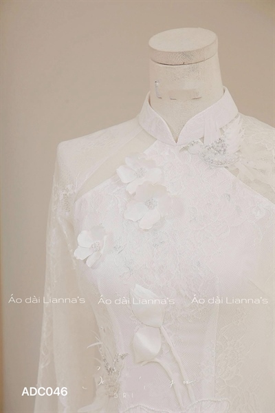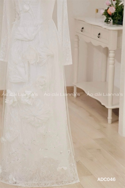 Áo dài cưới trắng đính kết hoa sen