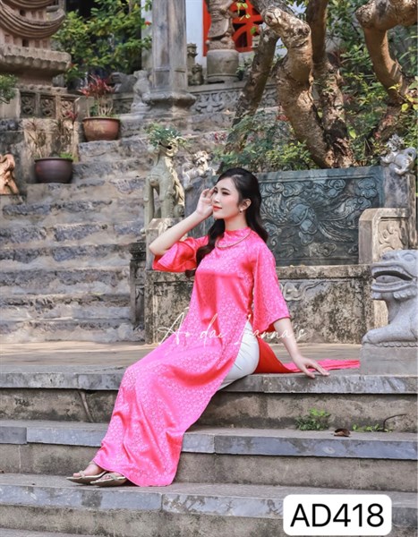 Áo dài form suông gấm tơ hồng sen