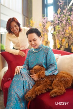 Áo dài lụa hà đông hoạ tiết chuồng chuồng cam