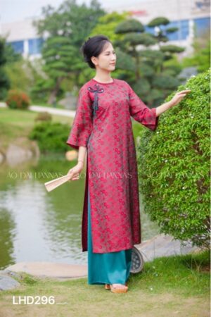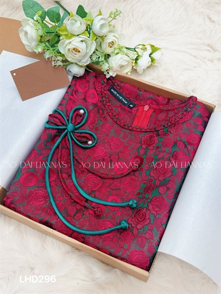 Áo dài lụa tơ tằm hà đông hoạ tiết hoa nổi màu đỏ mận