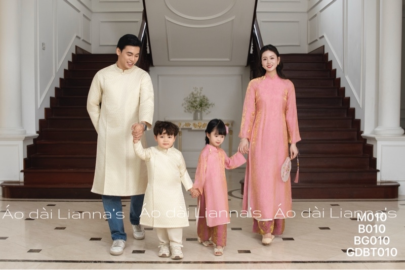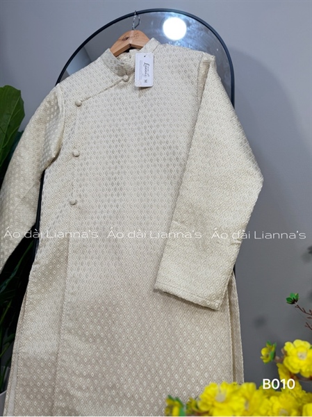 Áo dài nam kem ánh gold