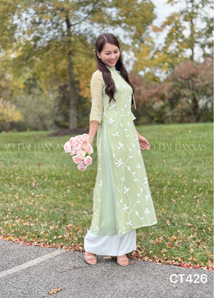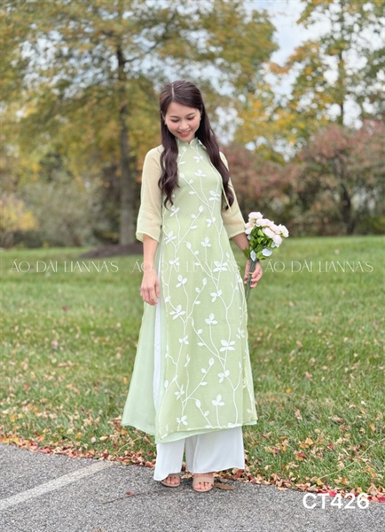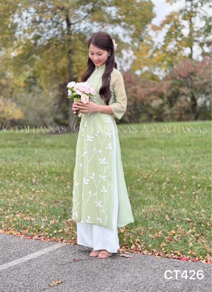 Hãy là người đầu tiên nhận xét “Áo dai suông hoa lá thêu tông màu xanh cốm” Hủy