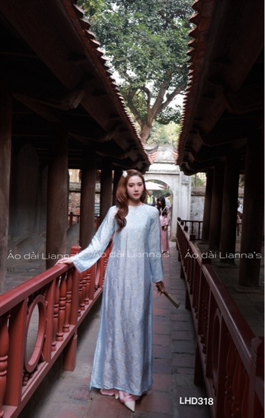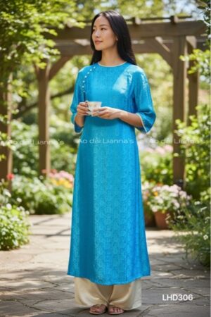 Áo dài tơ tằm hà đông tong xanh thiên thanh