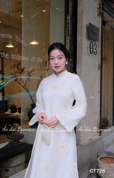 Hãy là người đầu tiên nhận xét “Áo dài trắng sữa hoa tiet thêu tròn” Hủy
