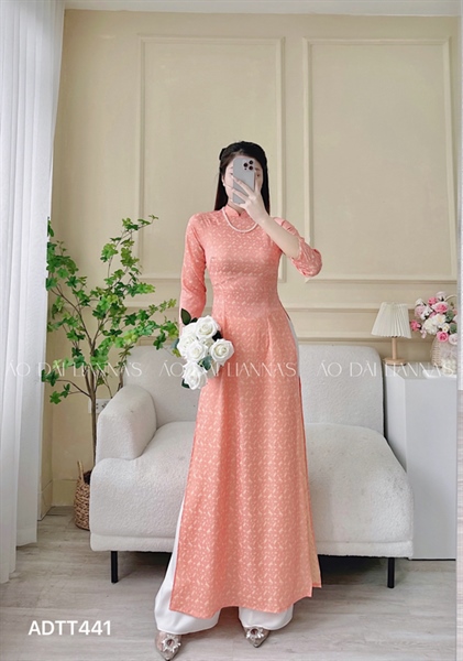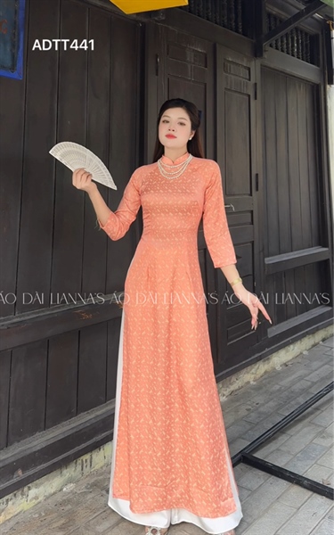 Áo dài truyền thống cam hoạ tiết chuồng chuồng