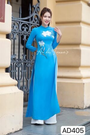 Áo dài truyen thong với hoạ tiết thêu hoa – chất vải lụa cao cấp co giãn nhẹ thoả mái. size S: nguc 82-84, eo 68 Size M: nguc 86-88, eo 70 Size L: nguc 90-92, eo 76 Size XL: Nguc 94-96, eo 80 Size XXL: Nguc 98-100 , eo 84