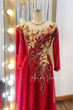Áo dài cưới – ao dai ba sui – được đặt may theo số đo.