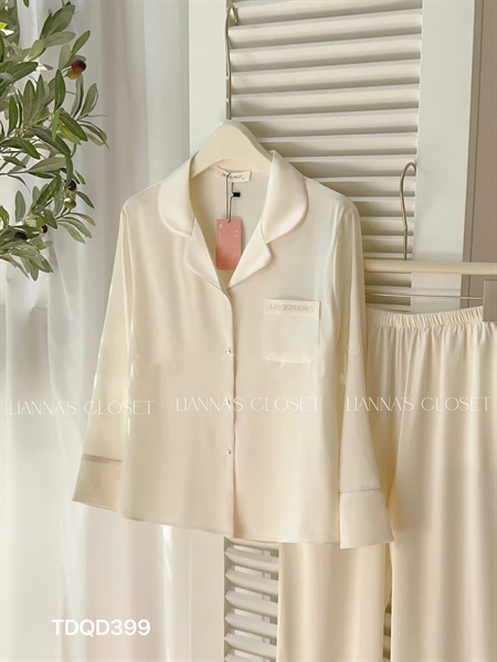 lụa tay dài quan dài be kem túi chữ