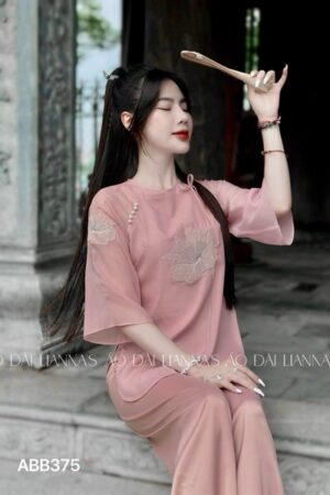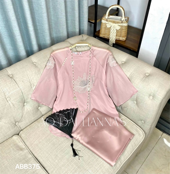 Set bà ba hồng theu hoa mẫu đơn