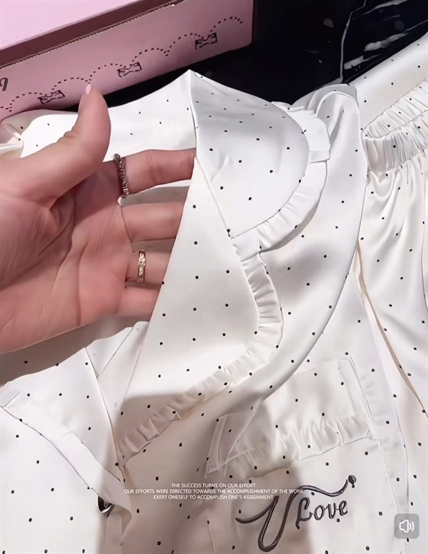 Set lụa cao cấp tay ngắn quần dài kem chấm bi