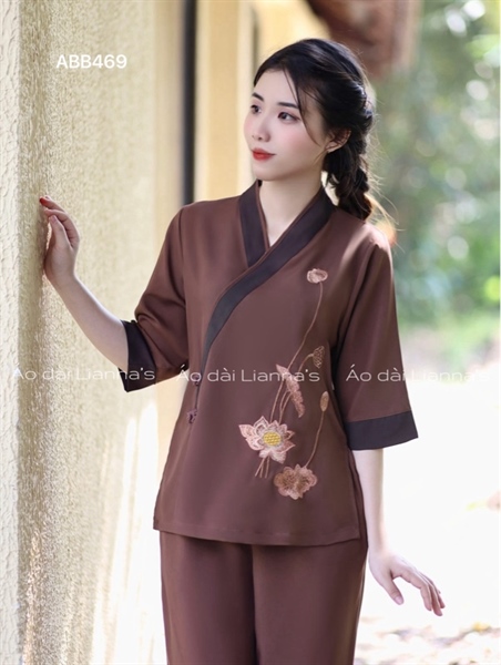 Hãy là người đầu tiên nhận xét “Set pháp phục nâu đậm cổ chéo thêu sen” Hủy
