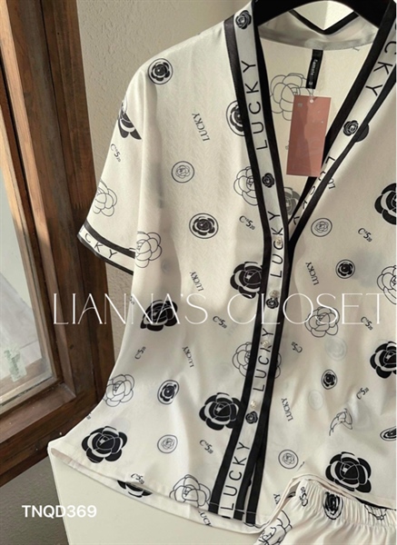 Set tay ngắn quần dài 3 món hoa Hồng đen