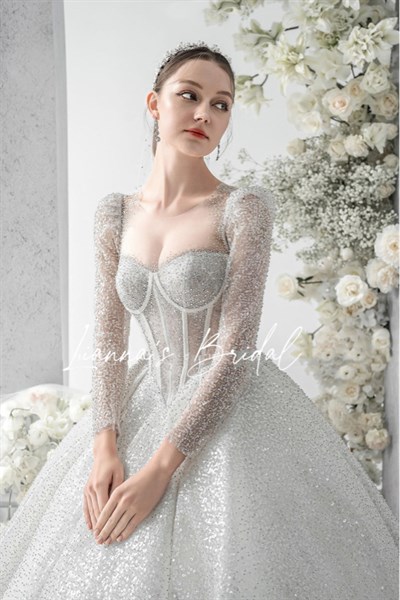 Váy cưới cao cấp cúp ngực – đuôi dài