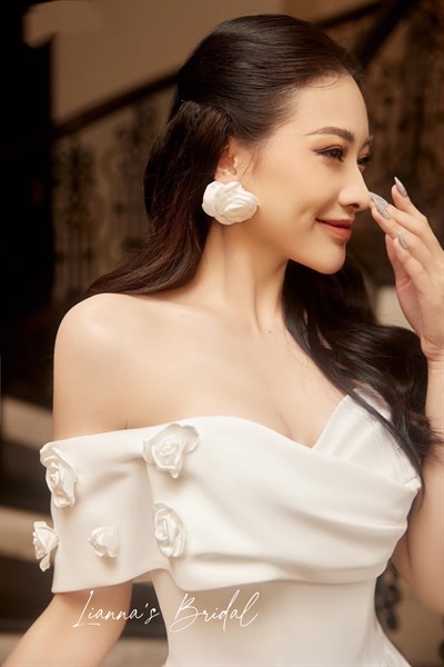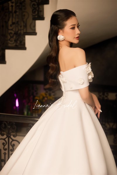Váy cưới trơn trễ vai